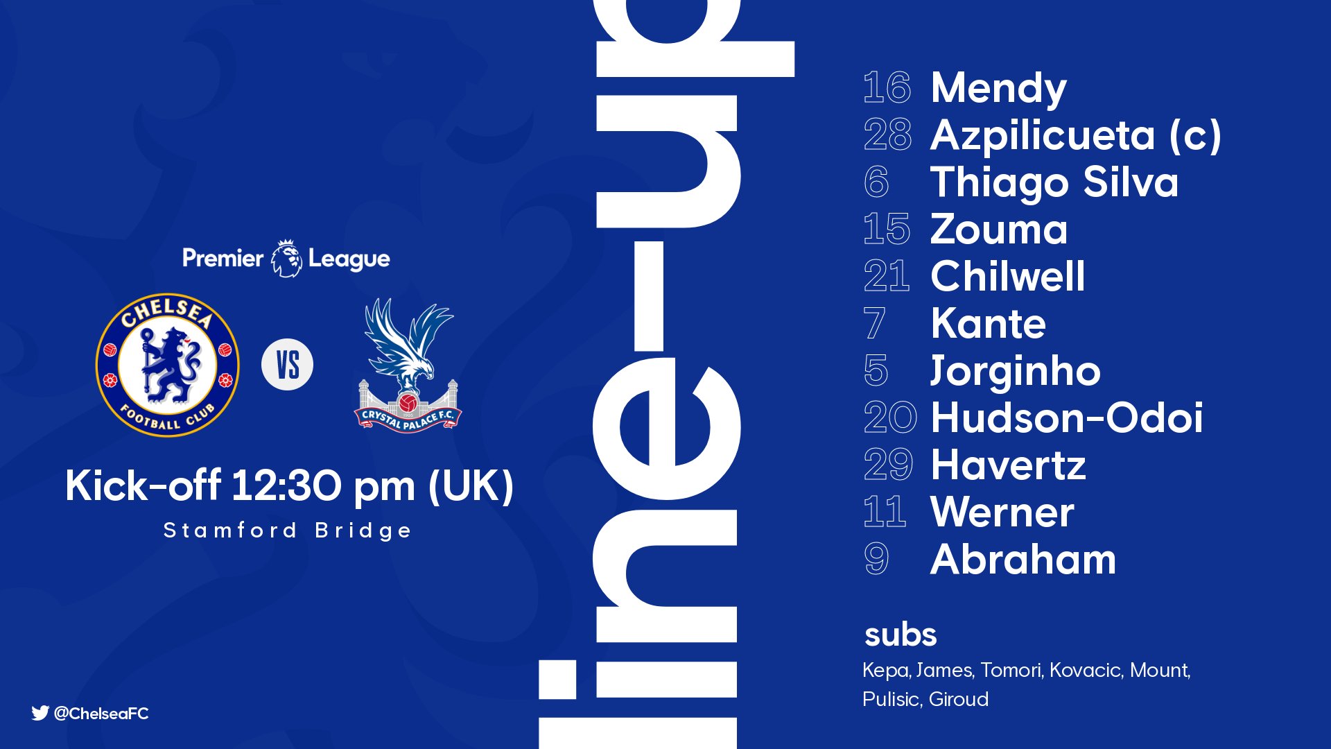 Full squad information for chelsea, including formation summary and lineups from recent games, player profiles and team news chelsea lineup today. The game between manchester city and chelsea has caught the attention of football fans all over the world, and one of the main doubts that emerged prior to the game was which men would start the game for both sides.