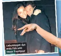 Die beiden liegen sich darauf in den armen, sie strahlt in die kamera, er hält ein sektglas in der hand.